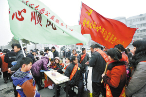 “ 我承诺:尽己所能,不计报酬,帮助他人,服务社会,践行志愿精神,传播先进文化,为建设美好江苏贡献力量!” 2月23日上午,来自全市各行各业的数百名志愿者齐聚云龙区沃尔玛超市前广场,参加全市2013年“学习雷锋好榜样”志愿者集中行动。