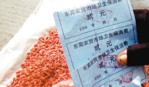 “我被收了10元钱,我每次来卖东西,都被收这些费用。”一位卖枸杞子的妇女拿着5张票据,每张面额为2元,上面写着“东苑农贸市场卫生保洁费”,盖有“东苑农贸市场收费专用章”。