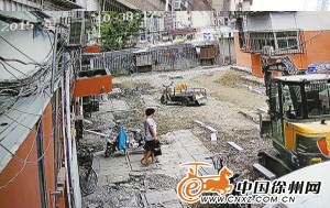 随后记者在小区保安室查看了当天的监控录像,画面显示,老人摔倒的地方正好位于监控盲区,正如王先生所说,当时现场堆积石块的位置并没有放置隔离标志。